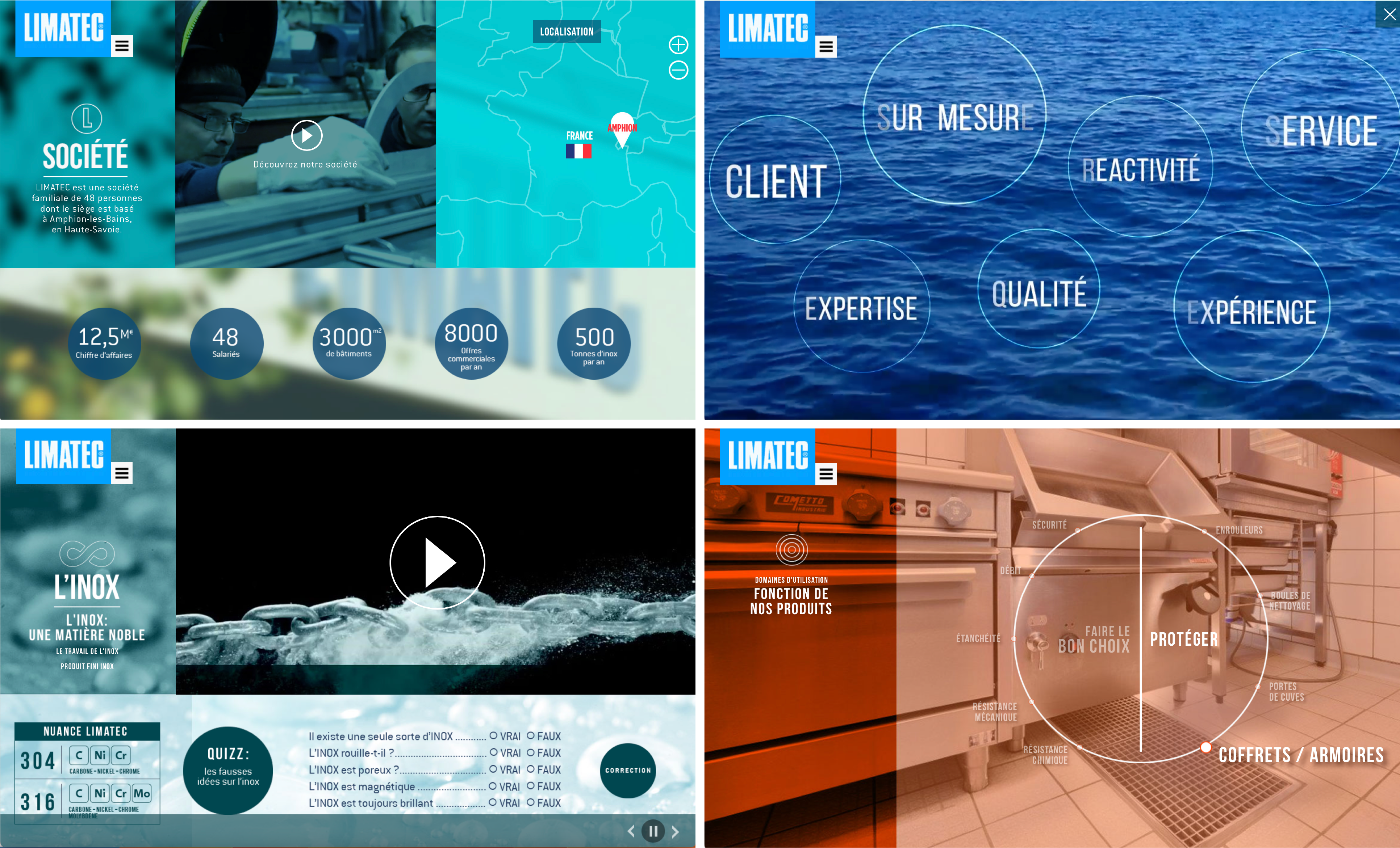 Limatec propose des solutions en Inox pour différents secteurs d’activité. L’objectif était de proposer une interface web interactive qui présente l’entreprise et tous leurs produits
